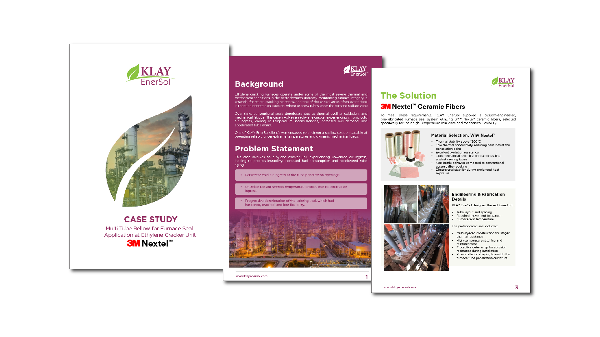 KLAY EnerSol supplied a custom engineered furnace seal system utilizing 3M™ Nextel ceramic fibers, selected for their ability to maintain thermal stability above 1300°C while remaining mechanically flexible under dynamic operating conditions.
